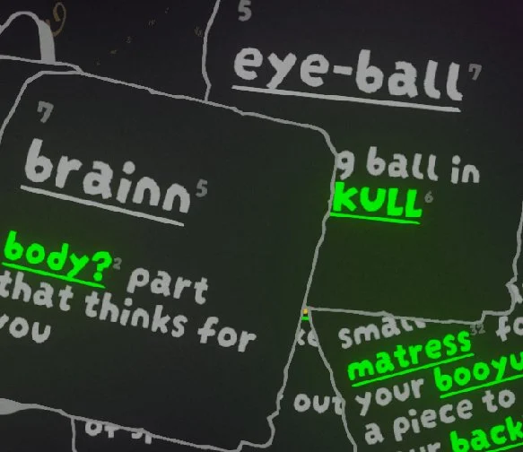 “nick¹s recursive videogame⁴ about deciphering word¹⁶ puzzle⁷⁹s to discover your identity²⁵ and redefine the universe³¹⁸!”