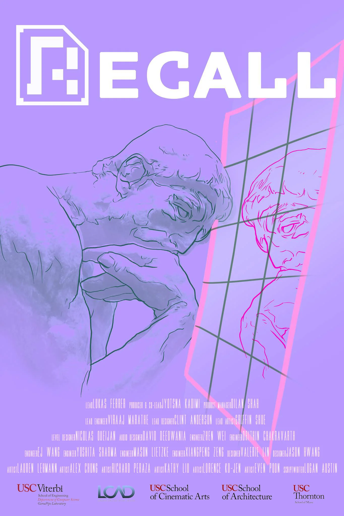 Recall is an interactive virtual reality game which utilizes the Method of Loci to improve memory by framing pertinent information in spatial contexts. The first VR game at USC's Gamepipe lab, Recall allows users to explore digital documents by parsing, processing, then transforming the documents into unique memory palaces which can be navigated at will. This spatialization of information into navigable landscapes re-imagines the way we perceive of and experience memories. By framing information in the context of these spaces and places, we can increase the ability of players to recall and remember that very information. Procedural and parametric generation is utilized in every step of Recall's development to facilitate this, from assets, to rooms, to props, and navigation.